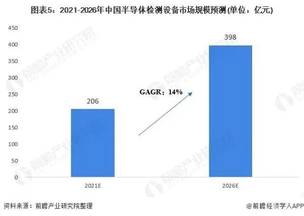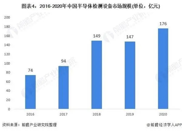 据统计,我国半导体检测设备约占整个半导体设备市场的17%,由此可推算,2019年我国半导体检测设备市场规模约为147亿元,2020年我国半导体检测设备市场规模已经达到了176亿元。